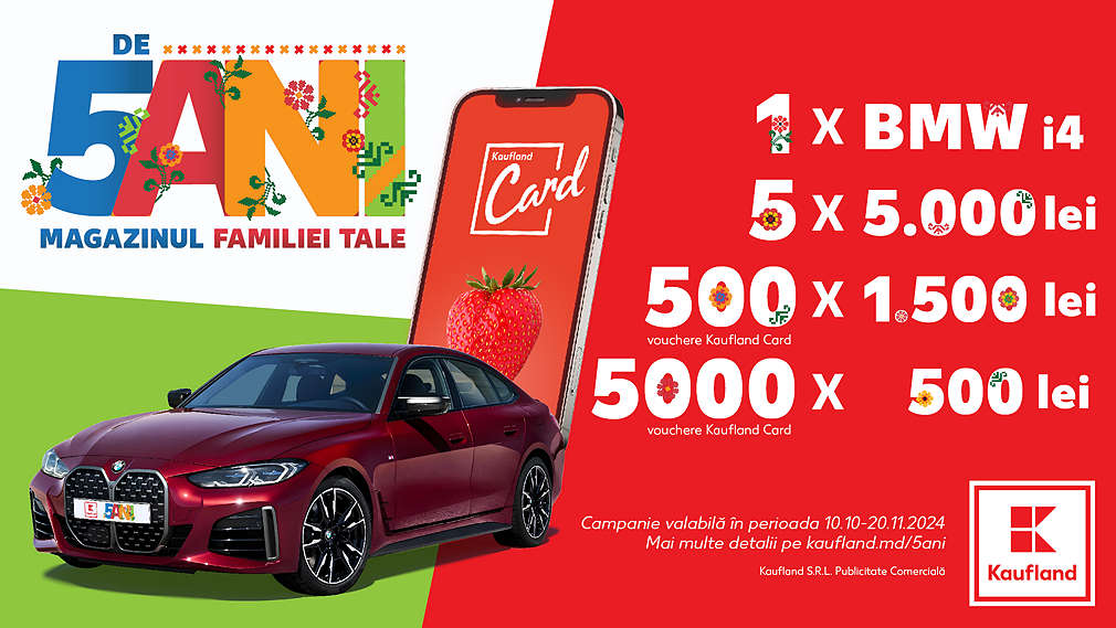 Kaufland Moldova marchează cinci ani de activitate în Republica Moldova, lansând o campanie aniversară - „De 5 ani magazinul familiei tale”, oferind clienților promoții și premii speciale.