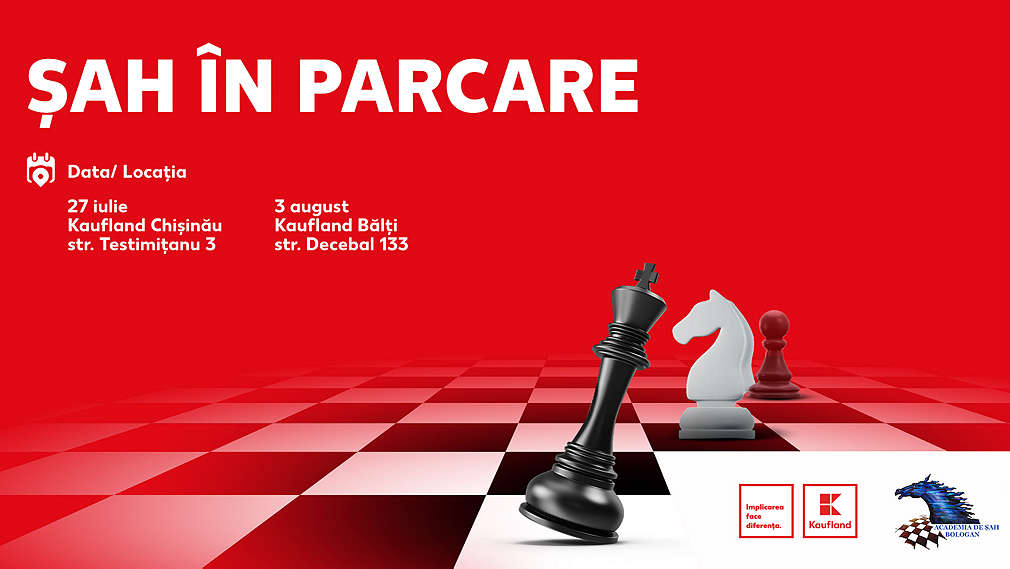 Vara aceasta șahul iese din sălile de clasă și ajunge în parcările magazinelor Kaufland din Chișinău și Bălți! Academia de Șah Bologan, cu sprijinul Kaufland Moldova, organizează două ediții speciale ale evenimentului „Șah în parcare”. Duminică, 27 iulie, ora 10:00, parcarea Kaufland, str. Nicolae Testemițanu 3 din Chișinău și duminică, 17 august, ora 10:00, parcarea Kaufland, str. Decebal 130 din Bălți.